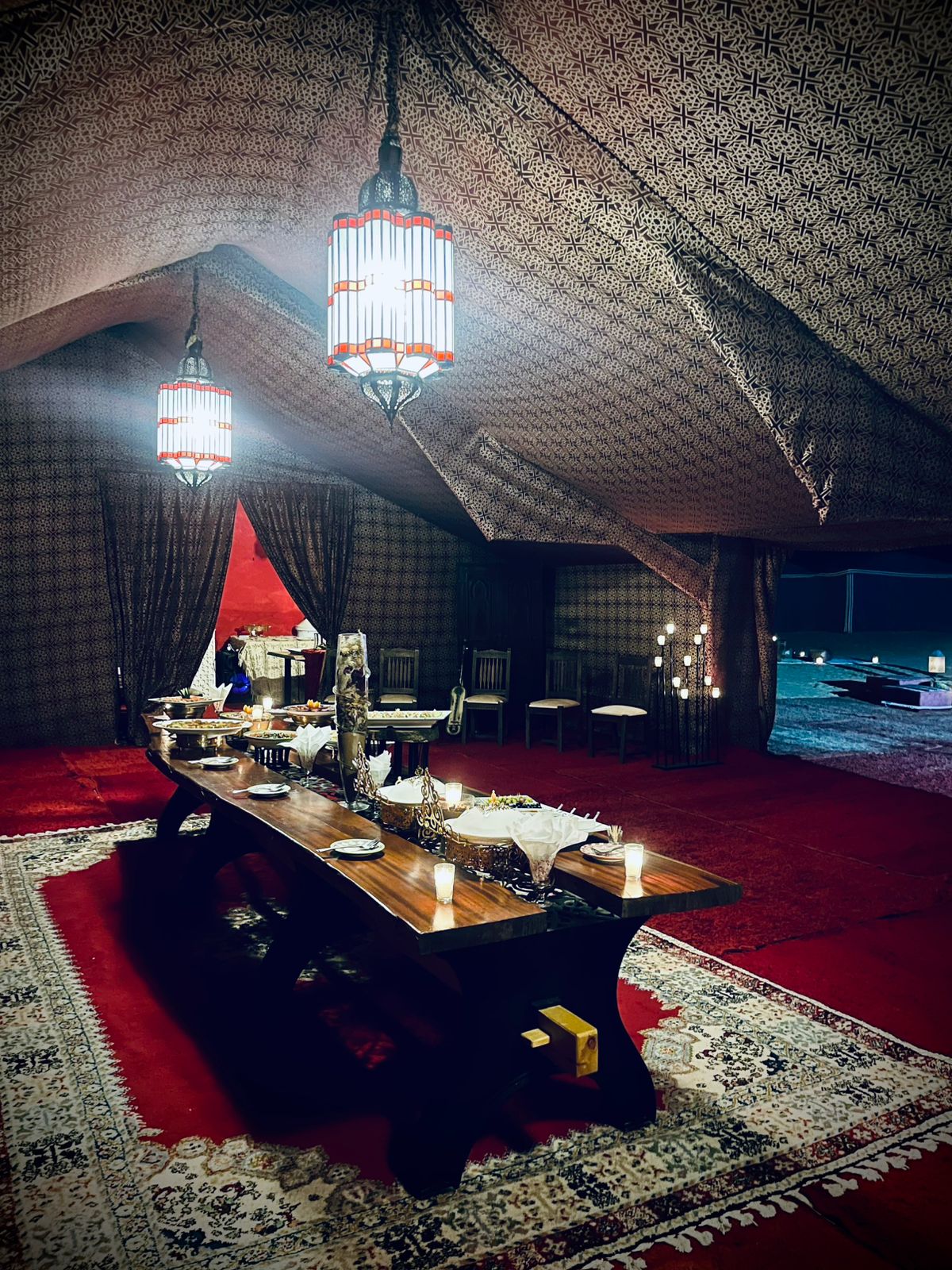 Check-in at an elegant desert camp. Time to relax and enjoy the peaceful rhythm of the desert.